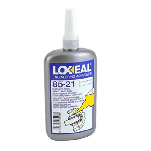 LOXEAL 85-21 Retaining Adhesive is the ideal liquid adhesive for rigid flanges and large gaps. It is a fast-curing high strength anaerobic adhesive for locking and sealing threads and retaining cylindrical parts. It allows larger machining tolerances and is highly resistant to heat, corrosion, vibrations, water, gases, oils, hydrocarbons, and many chemicals.