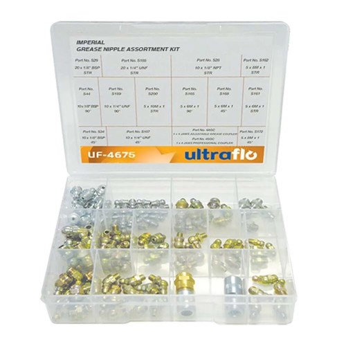 ULTRAFLO Imperial Grease Nipple Assortment Kit 110Pcs