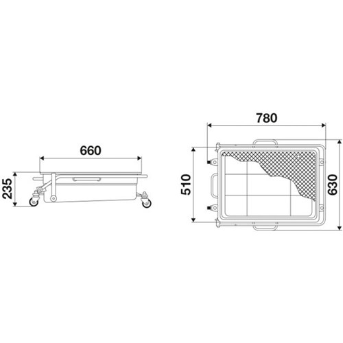 - Wheel-mounted floor waste oil drainers suitable for gravity draining of engine, gearbox & diff oils from all vehicles